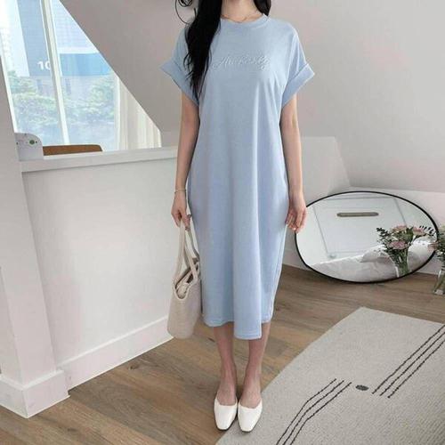 여성 롱니트 셔츠 뷔스티에 여름 데님 롱 원피 WFKPDPY
