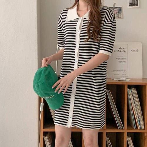 단가라 온나핏 여름 롱니트 쉬폰 하객 셔츠 원 WFKPDQP