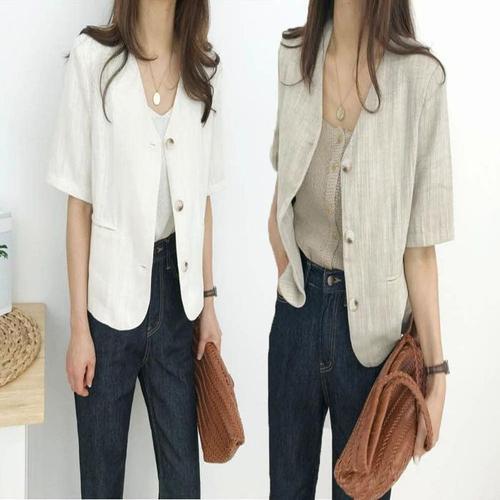 타임퓨어 여성 오버핏 반팔 얇은 정장 자켓 빅사이즈 캐주얼 더블 포켓 데일리 패션 가디건 심플 고급 오피스룩 양복