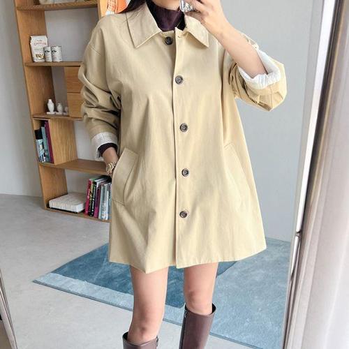 [삐까삐까]루즈핏 심플 면 싱글 하프 트렌치 코트 여성 간절기 가을 캐주얼 아우터