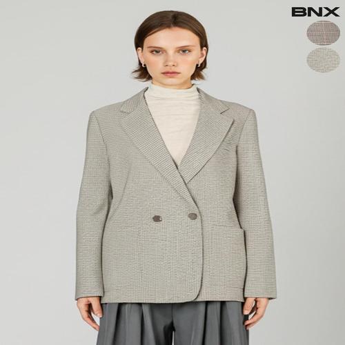 [비엔엑스]여성 테일러드 체크 더블 자켓
