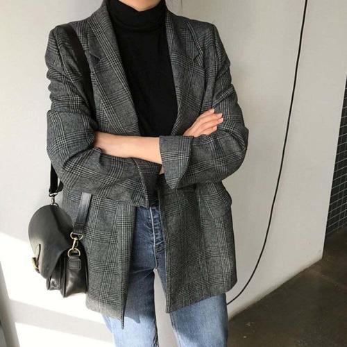 [JHQRFUZO_4B]루즈핏 체크 자켓 캐주얼정장 여성겨울의류