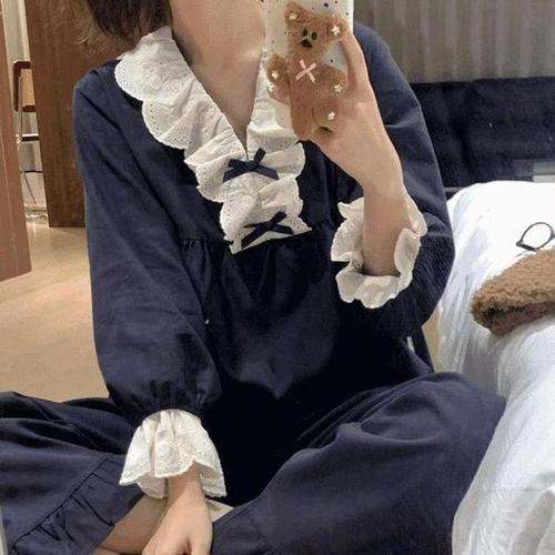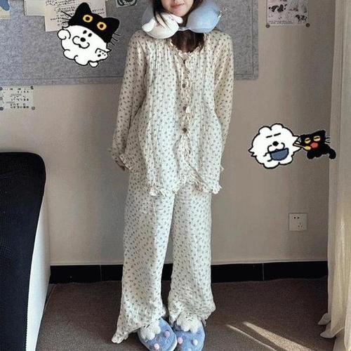 [셀러허브_여성트랜드패션]ONM 버터프릴 파자마세트 긴팔 세트 봄 홈웨어 여성