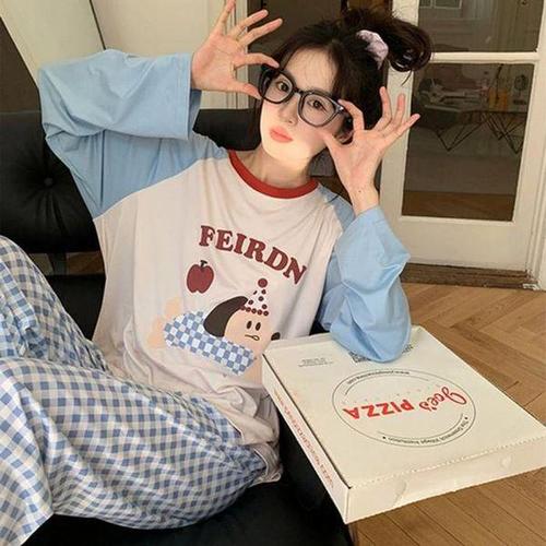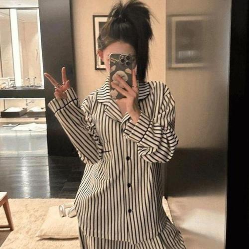 [셀러허브_여성트랜드패션]ONM 레포 파자마세트 가을 여성 긴팔 파자마 세트 잠