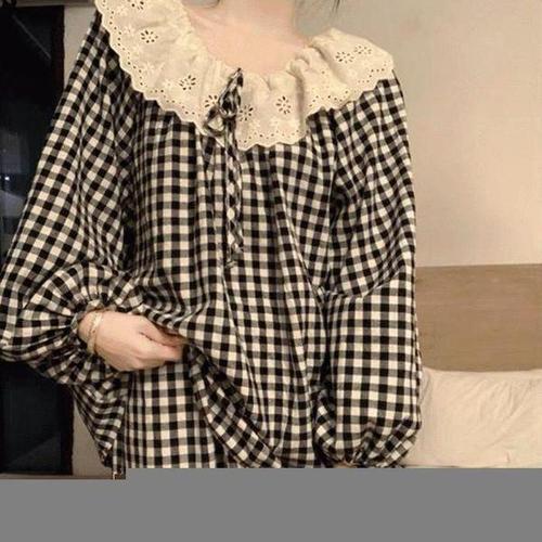 [셀러허브_여성트랜드패션]ONM 러체크 파자마세트 파자마 가을 간절기 홈웨어 잠