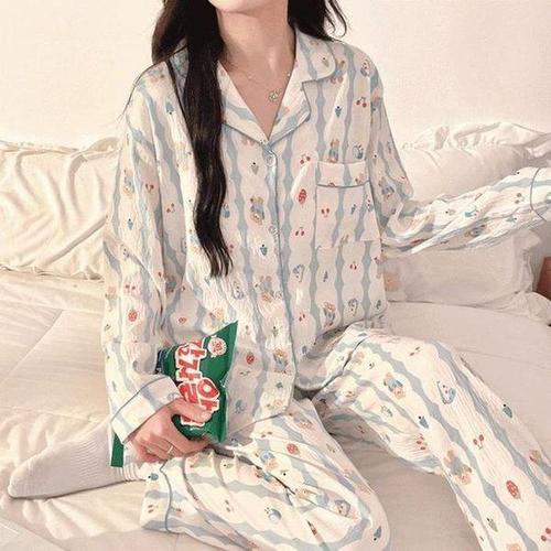 [셀러허브_여성트랜드패션]ONM 크라임베어 파자마세트 간절기 홈웨어 여성 파자마