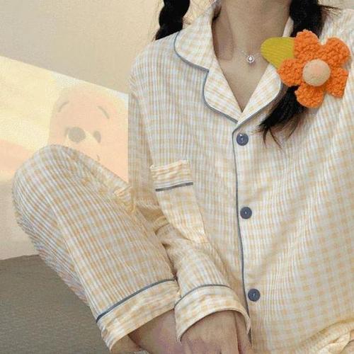 [셀러허브_여성트랜드패션]ONM 오렌지체크 파자마세트 파자마 긴팔 잠옷 세트 가