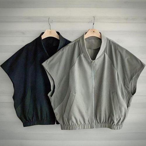 [옷자락]여성 데일리 헨리넥 절개 반팔 집업 조끼
