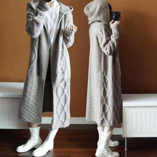 [셀럽하우스]후드 BFWA8284 롱 여성용 패턴 꽈배기 캐주얼 가디건