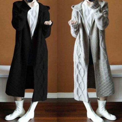 [셀럽하우스]블랙 XVHS7828 그레이 후드 꽈배기 롱 뜨개질 니트 가디건