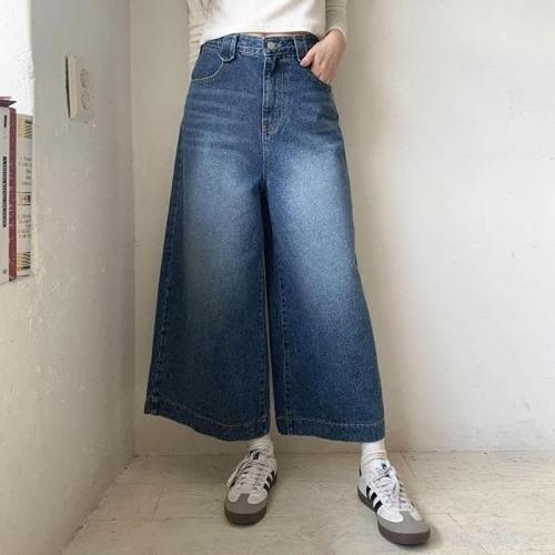 [옷자락] 여자 가을옷 절개 벌룬 와이드핏 9부 통 밴딩 청바지