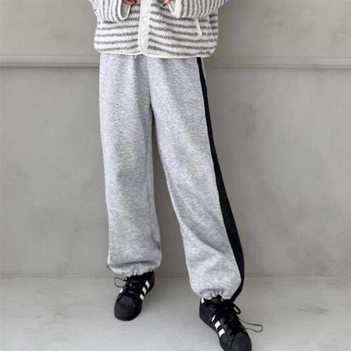 [옷자락]여성 스트리트 패션 기모 일자핏 절개 밴딩 바지