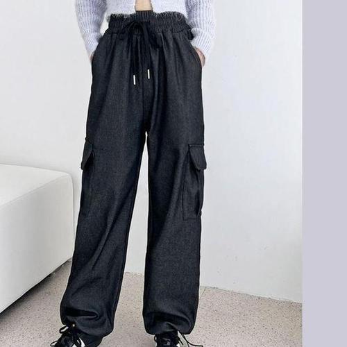 [셀러허브_여성트랜드패션]ONM 데님 여성 카고 팬츠 스트링 기모 여자 밴딩 바