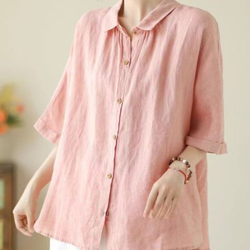 [모노무드]모노무드 여성린넨블라우스 여성여름블라우스 루즈핏 린넨 7부 셔츠 여자 미시 옷
