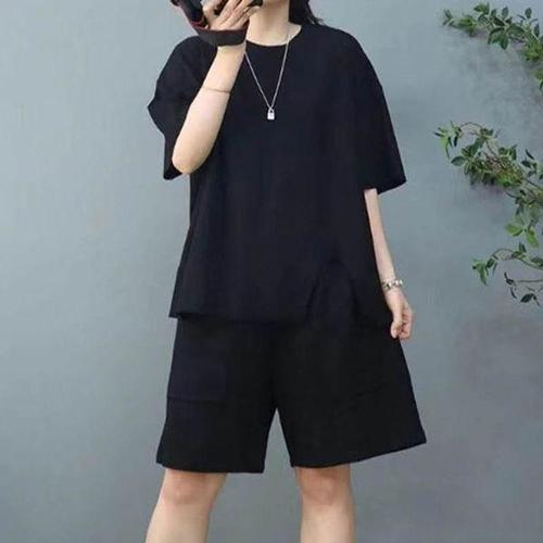 ANYOU 여성용 트레이닝세트 빅사이즈 캐주얼 반팔티+반바지투 오버핏