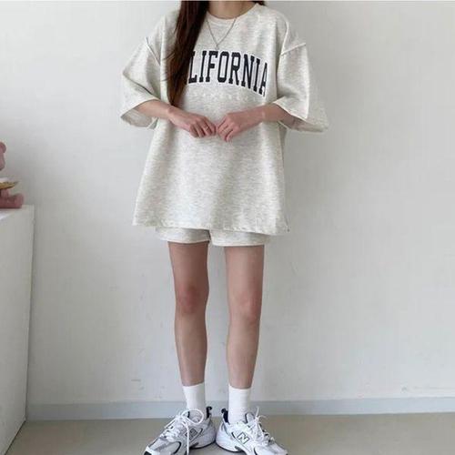 [콩심팥심]여성 캐주얼패션룩 깔끔한 반팔 반바지 트레이닝 세트