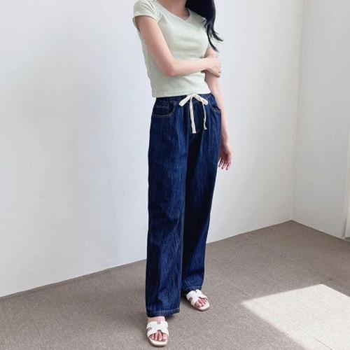 [에이치플러스몰]여성바지 여자바지 배기바지 코디 허리밴딩 일자 면