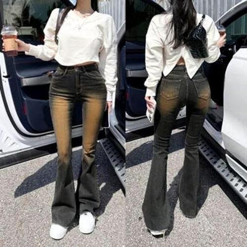 나인클로젯 빈티지 워싱 뒷밴딩 찢청 여성 와이드 청바지 가을 겨울 진청 팬츠