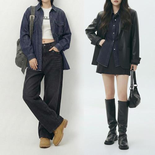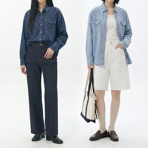 여자 캐주얼 스탠다드핏 데님셔츠 진청 청남방 연청 (WFKBXA7)