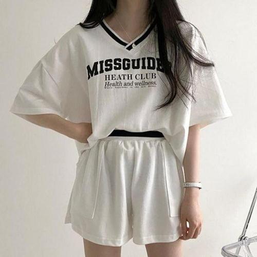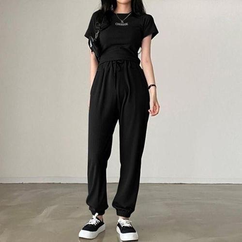 샵159 여성용 네이키 레터링 맨투맨 조거 트레이닝복 세트