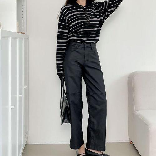 [신상오픈런]여성 스판 절개 세미와이드 코팅 가죽바지