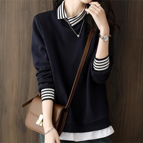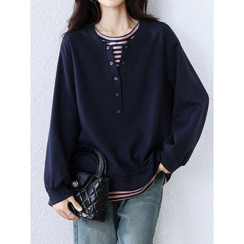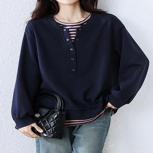 패션 여성 봄 가을 맨투맨 여성용 프렌치 스타일 디자인 포인트 소수 한정판 감각적 레이어드 스웨트셔츠 WJY