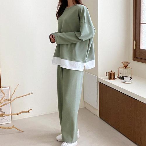 RCLET 여성 춘추 트레이닝복 후드코트+와이드팬츠 캐주얼투피스 츄리닝세트 운동복