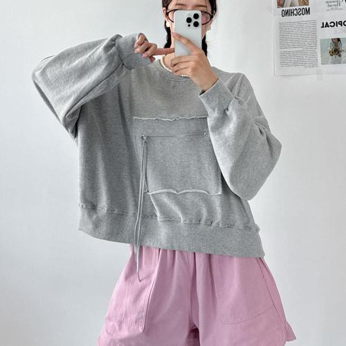 [셀러허브_여성트랜드패션]ONM 박시 루즈 핏 레이어드 맨투맨 티셔츠 회색 무지