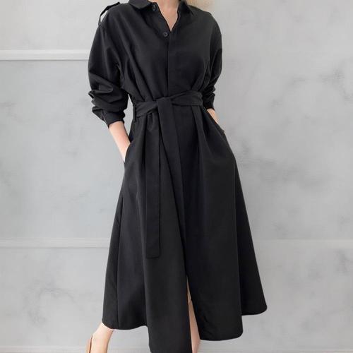 [샵앤]여성 카라넥 데일리 롱셔츠 무릎기장 원피스 21DS-WDR-4890-블랙