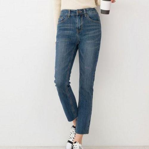 [에이치플러스몰]봄가을 여자 여성 스키니진 9부 면 청바지 데님팬츠