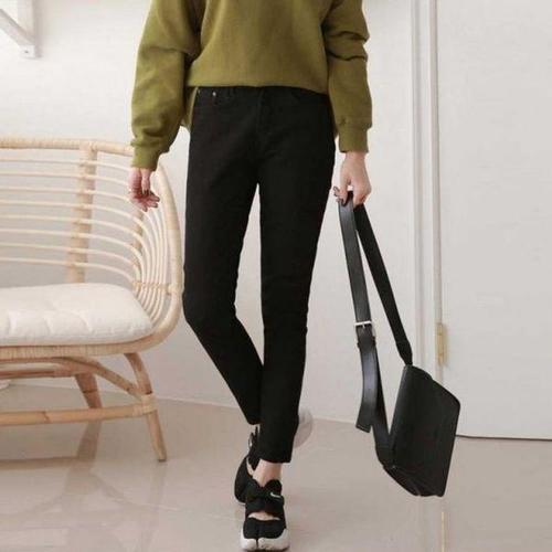 여자 논스판데님 스키니진 중청 코튼 청바지_4