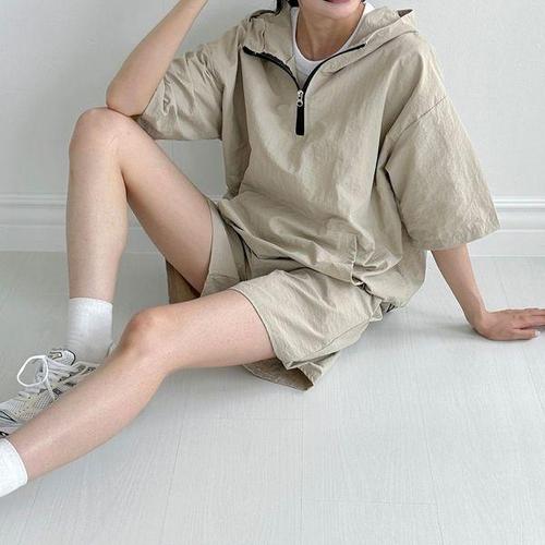 [에이치플러스몰]여름 여자 쿨한 아노락 반팔 반바지 트레이닝 세트