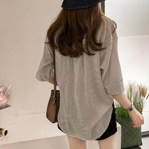 [에이치플러스몰]여성여름블라우스 루즈핏 데일리 여성셔츠 7부 클래식