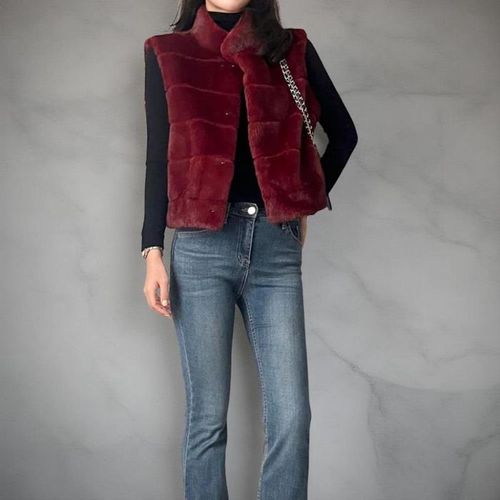 옷자락 / 여성 겨울 연말 행사룩 스트라이프 부드러운 인조밍크
