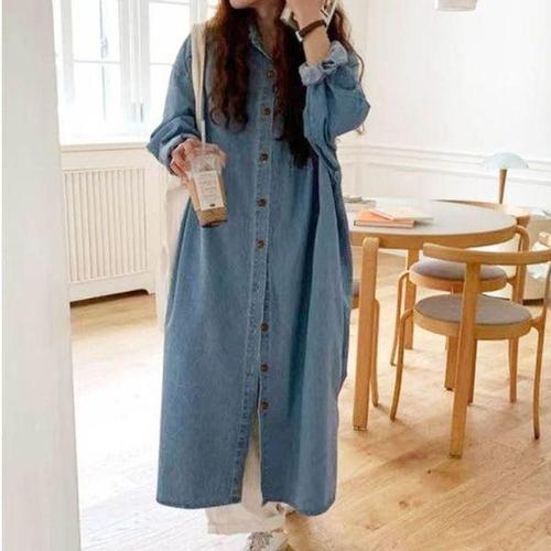 [옷자락]여성 캐주얼 버튼 후드 슬림핏 a라인 롱 원피스