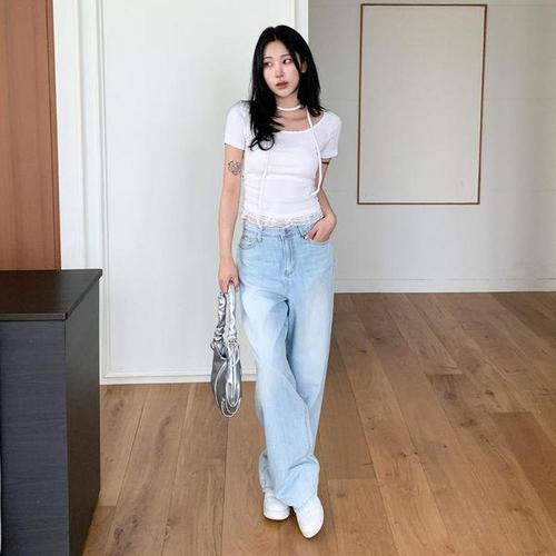 [에이치플러스몰]편안한 연청 데님 통바지 캐주얼 스타일 일자