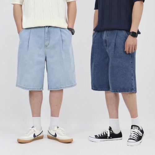 [투뎃] 남성용 시크릿밴드 스판 와이드 데님 반바지
