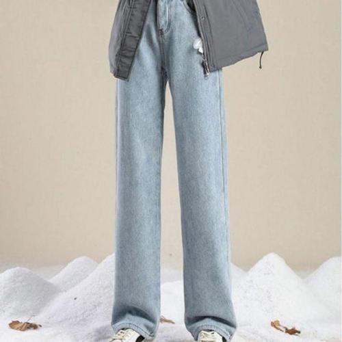 기모 데님 청바지 와이드핏 겨울 여성 보온 연청 WFL8Z6W