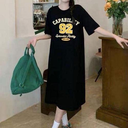 여성 레터링 루즈핏 데일리 롱원피스 Bon-2441