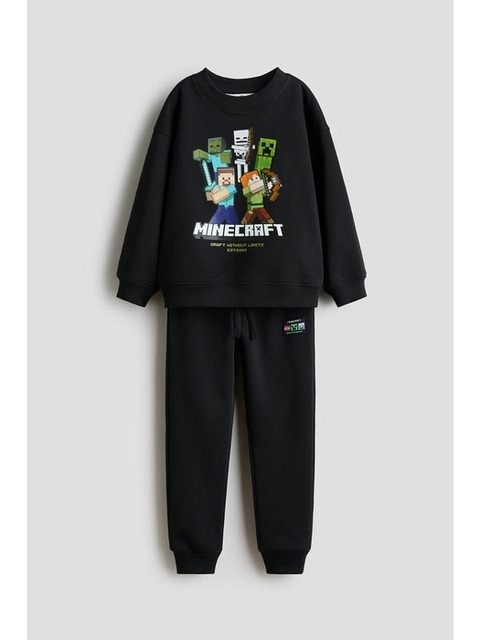 [에이치엔엠] 프린트 스웨트셔츠 2피스 세트 블랙/마인크래프트 1169768037