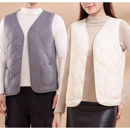 (2장) 여성 양모패딩조끼 양모조끼 패딩조끼 누빔조끼 베스트 겨울 이너 브이넥 방한조끼