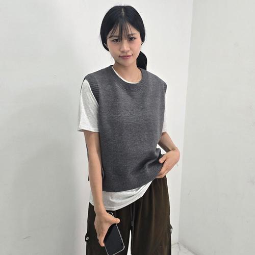 [샵앤][샵앤] 여성 라운드 옆트임 세미크롭 레이어드 니트 조끼 SIU-WVS-4941-차콜