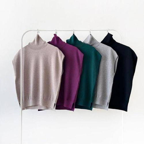 [옷자락]여성 가을 하이넥 목폴라 니트 조끼 옆트임 오버핏무지