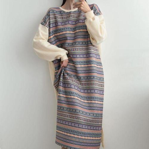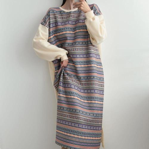 [옷자락] 여자 패턴 스웨터 옆트임 빅사이즈 배색 니트 롱원피스
