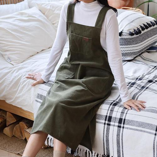 [옷자락]여자 빅포켓 골덴원피스 속기모 옆트임 멜빵 롱원피스