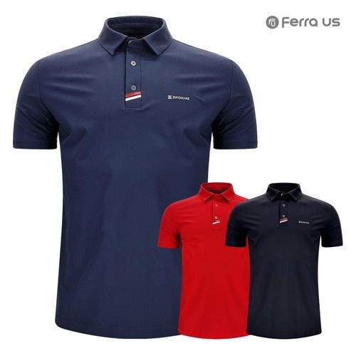 [페라어스]페라어스 남성 BLK 옆트임 삼색테잎 카라 골프 반팔셔츠 CTM3JBK2040