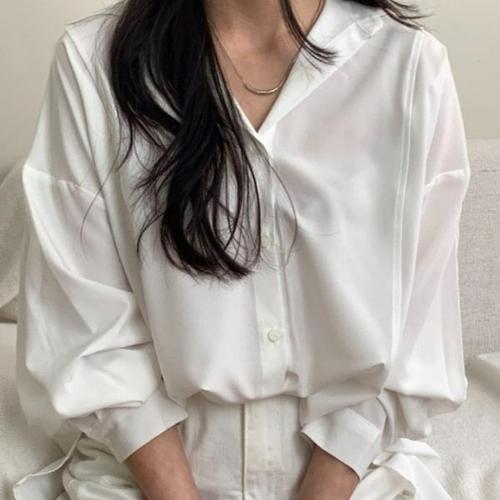 [미라클세븐]찰랑블라우스 루즈핏 여리 스판 옆트임 롱셔츠