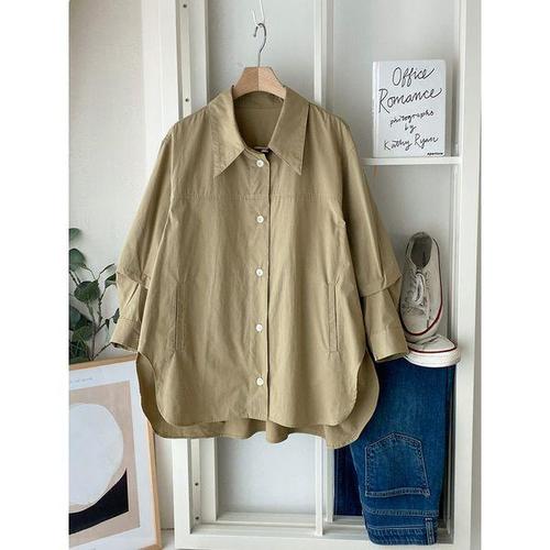 [샵앤]여성 카라넥 옆트임 언발 A라인 남방 셔츠 DGB-WBL-4123-연카키