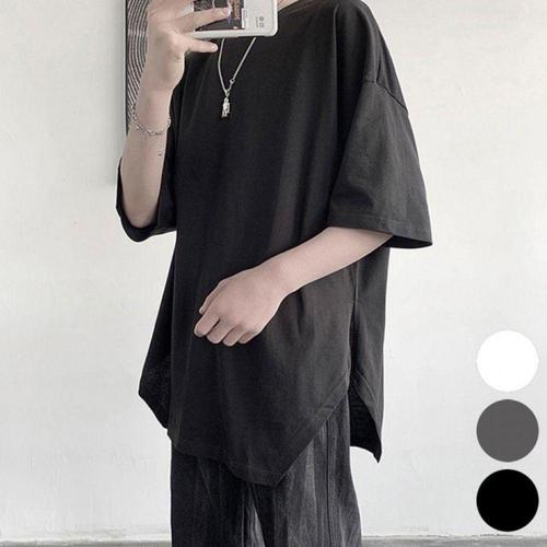 남성용 라운드 반팔 티셔츠 옆트임 오버핏 캐주얼 반팔셔츠 WFLM085