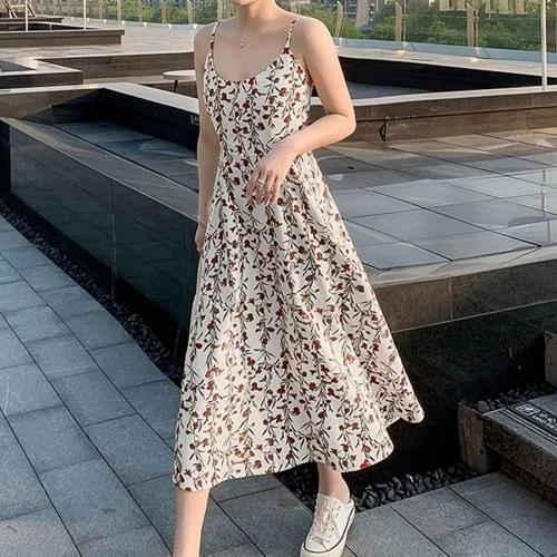어깨끈 길이 조절 가능한 예쁜 꽃무늬 여친룩 원피스